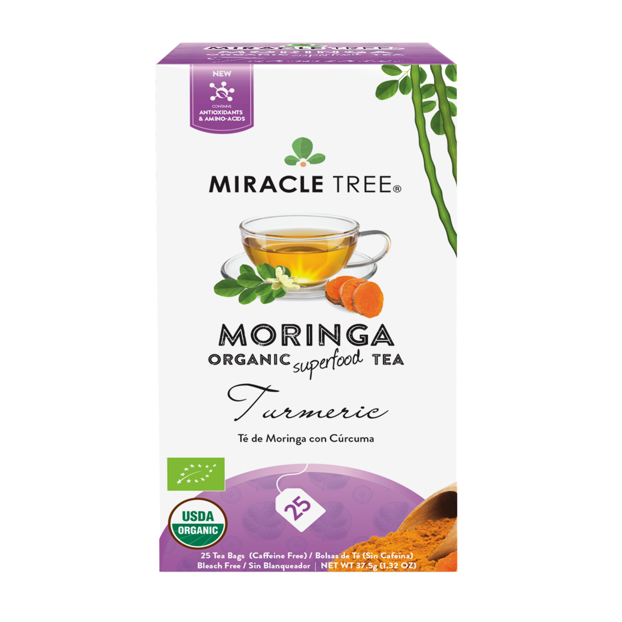 Organic Moringa & Turmeric Herbal Tea Bags – 25 Count