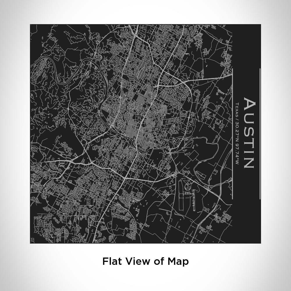 The Austin Texas engraved map tumbler features a custom-engraved city map and coordinates on a sleek matte black stainless steel travel tumbler. Designed with double-wall insulation, this tumbler helps maintain beverage temperatures while offering a durable and stylish design. The engraved map and inscription can be further customized, making it a thoughtful gift or personalized keepsake for Austin residents, travelers, or city enthusiasts.